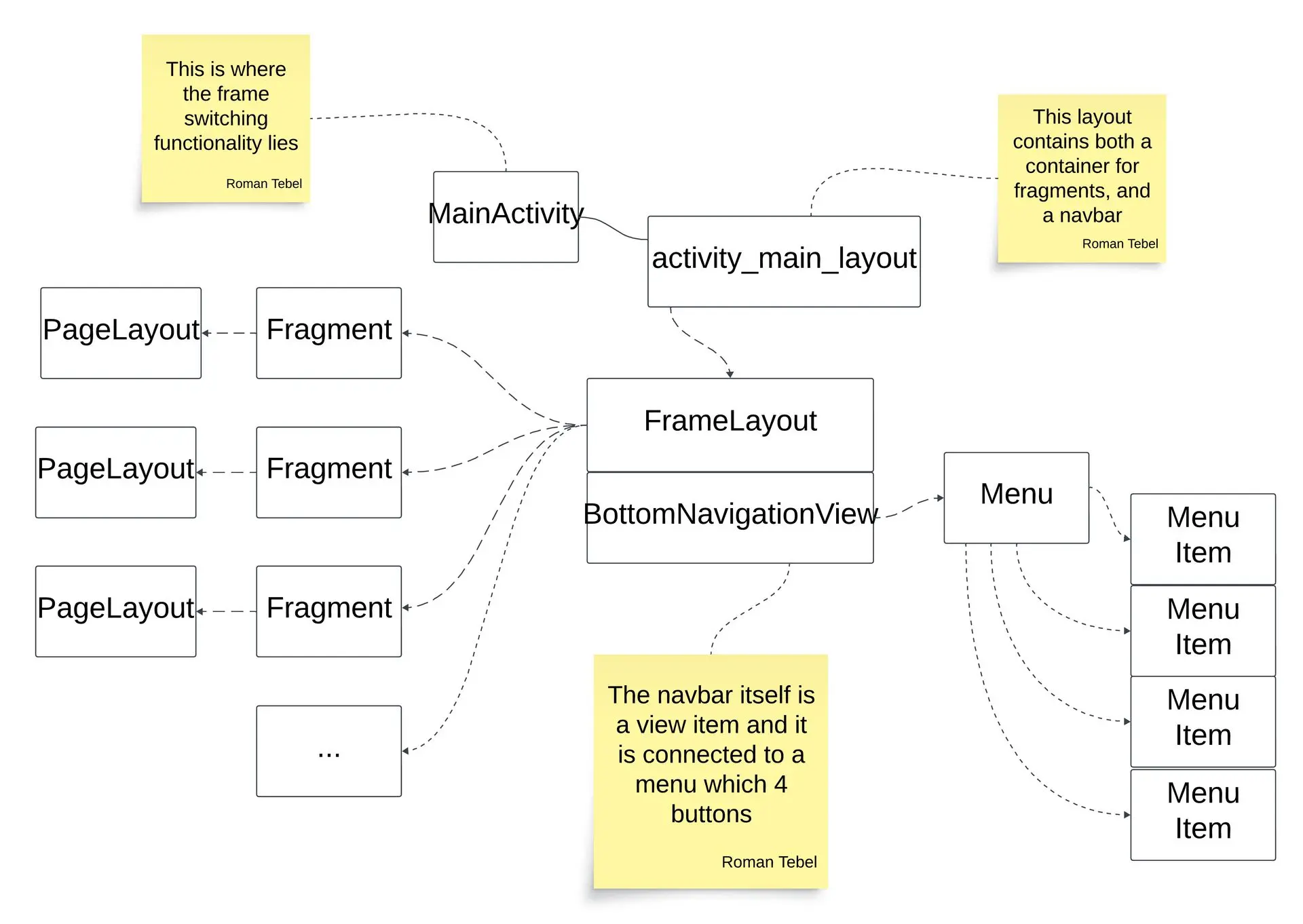 Below you may find the architecture diagram of the app and a few others that my team used to understand how android UI works.